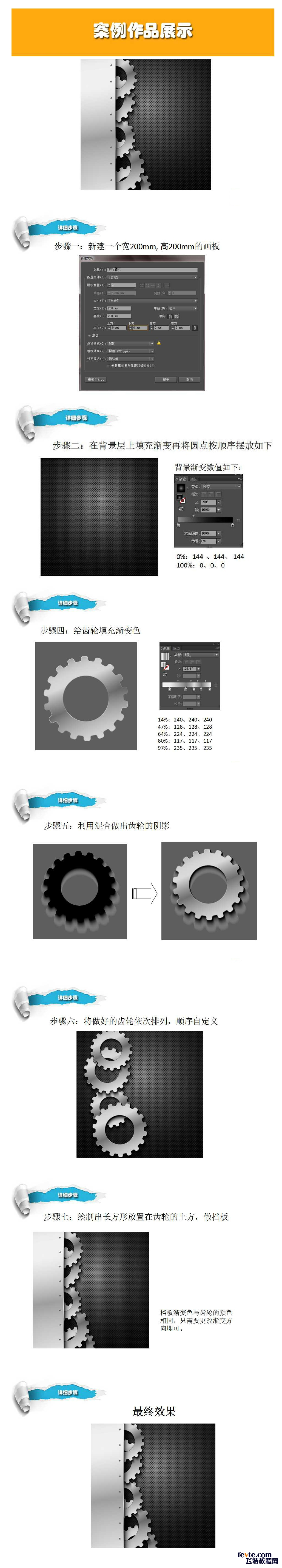 本教程是向大家介绍利用AI制作金属齿轮海报方法,教程运用了旋转与镜像工具,方法比较简单,新手朋友也可以过来学习,转发过来,希望大家喜欢本教程!