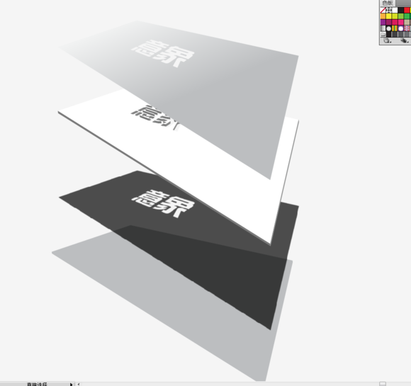 然后就是决定效果的一步了,把他们贴近,第三层阴影错位一些,模仿出光照下的阴影效果,最上面的渐变层也稍微错位一点点,露出第二层的白色层,以制造出边缘高光效果。