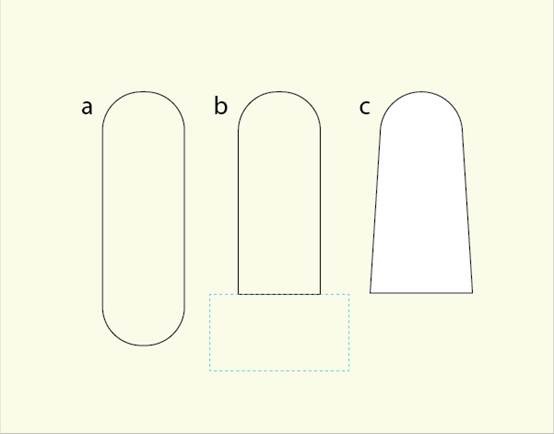 • 选择橡皮擦工具(Shift + E),按住Alt键拖出一个矩形框,从而擦除形状的底端部分。(b)