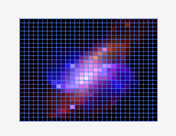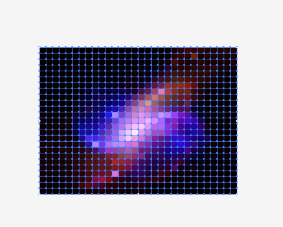 4、完了之后就是这样的效果,把他们全部选中编组之后,最好冲星空图上移到一边,这里其实马赛克效果并没有把那张星空位图打碎,只是给它照了张马赛克相片。