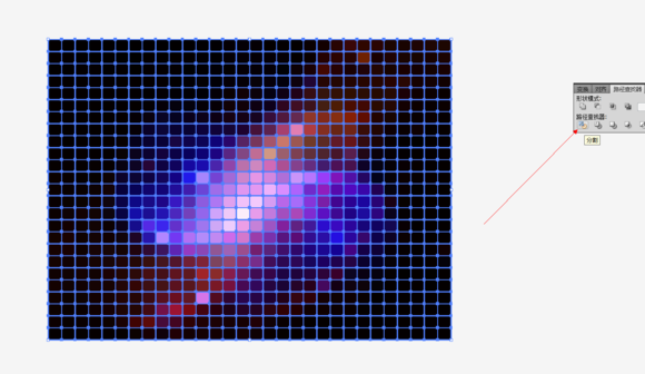 8、然后执行 路径查找器,这个命令,我的输入法都记住了,路径查找器-分割。这个命令很厉害,如果把这个命令比喻成一门武功的话,我把它比喻成 崆峒派绝技——七伤拳,看过倚天屠龙记的朋友都知道,当年明教的金毛狮王谢逊就用七伤拳杀伤了很多高手,七伤拳打中对手之后,表面上一点伤痕都没有,但是内部早都碎成渣了,好了跑题了。分割之后,我们的图形看着和以前一样,其实它已经顺着路径的走向碎成渣了。
