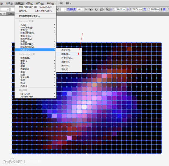 最后说一下,创建马赛克效果只对位图有效,所以你建立的矢量图用马赛克的时候,你会发现它的选项是灰色的。所以矢量图要想马赛克必须先进行栅格化,栅格化后就变位图了,这个命令和创建对象马赛克是邻居,一眼就能看到。