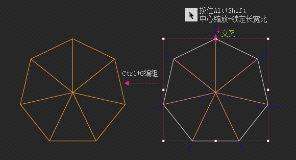 好了,现在可以全组并按照拉的十字参考线旋转了