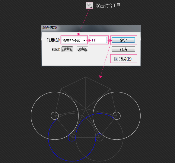混合两条路径。建议到这步做个备份。因为以下要扩展了。这里有个备份混合的线不够多什么的可以随时添加减少。