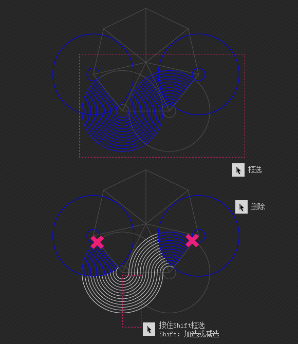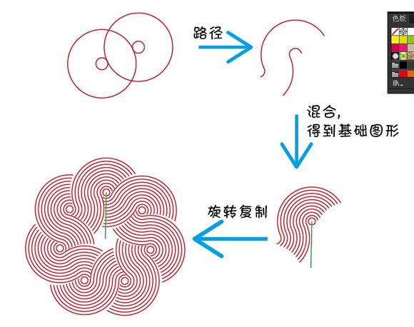 第一种:路径是根据原图用两组同心圆修剪得到