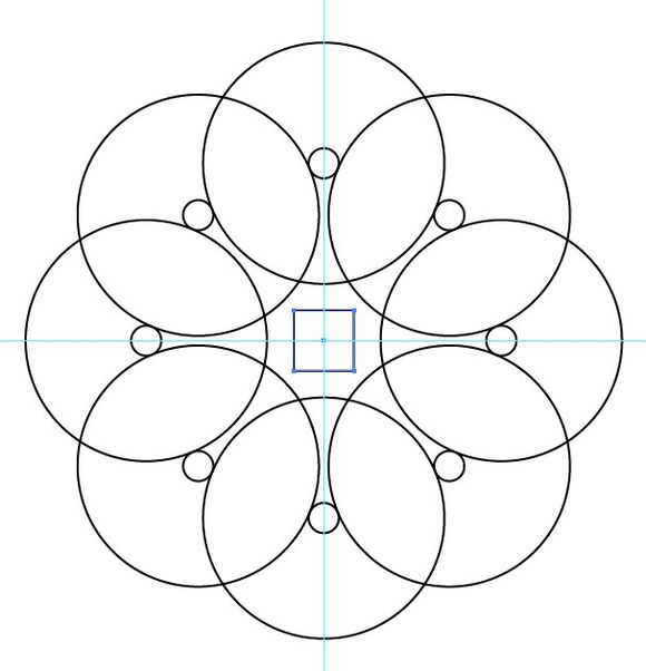 再画一10X10mm的方块,置于图形中间,并拉十字参考线。其实到目前为止都是为了图形做参考线。