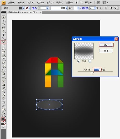 13、选择工具箱中的椭圆工具,分别在工作区中拖出一个矩形椭圆形状,并填充灰色,执行菜单:"效果"\"模糊"\"高斯模糊",设置高斯模糊的半径为12像素,并调整大小与位置,并选择透明度,设置为:正片叠加,如图13所示。效果图如图14所示。