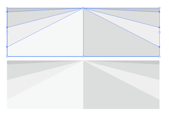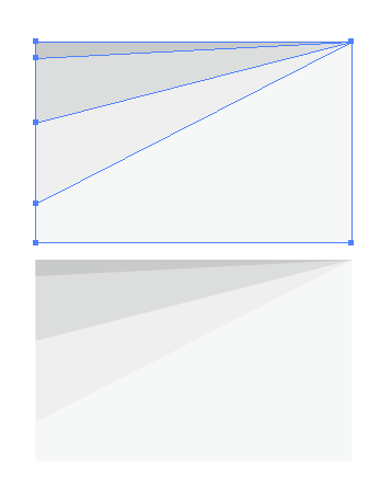 1.首先绘制以下图形,矩形和三角形,填充上需要的过度颜色。有几个三角形由你自己决定,但是会影响到最终过度的效果。