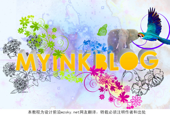 Download this image of an elephant, 下载这个大象的形象,并将其解压缩。将下方的星云图像中提取的大象,和文字图层。的大小减少到大约两倍的字母的高度.