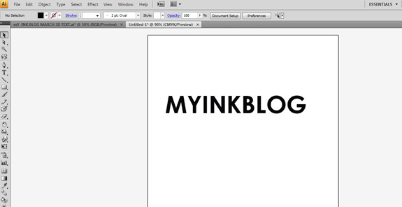 下载此字体Levenim MT Bold,粗体。加载的字体,然后打开Illustrator中,并键入 ‘MYINKBLOG’.
