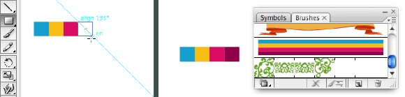 这里要遵循的步骤使用4平方各用不同的颜色来画刷集团4平方(指挥/控制+ G)分组的对象拖动到画笔调色板选择艺术画笔,并单击"确定"改变方向的刷子垂直(向上箭头)