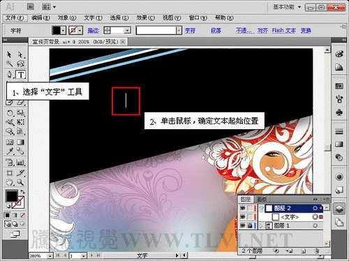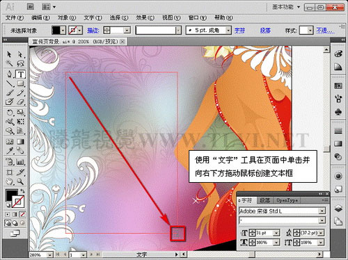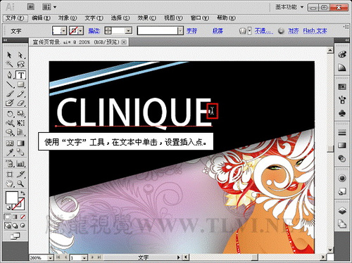 在工具箱中提供了多种文本工具,使用这些工具可创建点文本、创建区域文字、路径文本等。通过"字符"调板可设置文本的字符级格式。使用"段落"调板可设置文本的段落级格式。另外,还可以创建丰富的文字特效,如变形文字、应用预设样式,或在文本中插入图形,使文本围绕图形进行排列,以获得图文并茂的效果。
