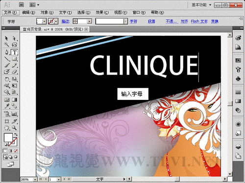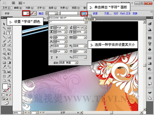 (10)在"字符"调板中设置文字属性,并在文本框中输入字母。