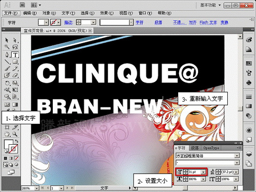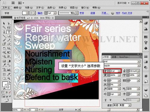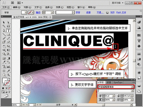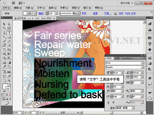 (5)使用"文字"工具选中文字,更改其文字设置。
