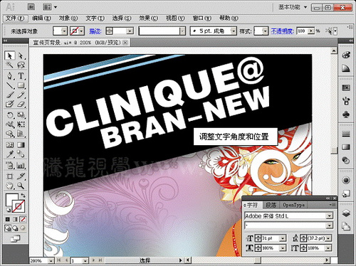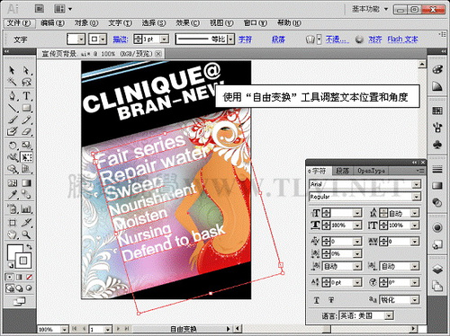 (20)使用"自由变换"工具,对文本的旋转角度和位置进行调整。