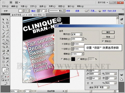 (21)执行"效果"→"风格化"→"投影"命令,为文本添加投影效果。