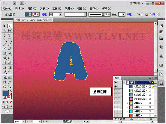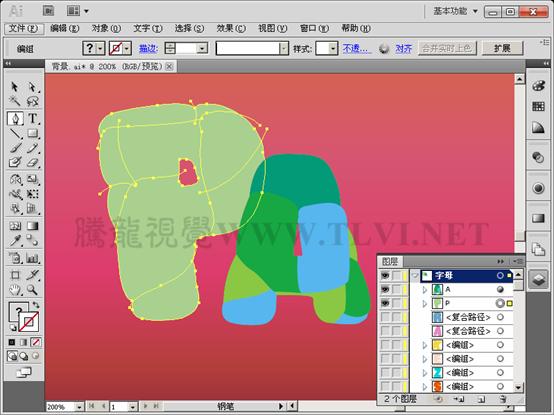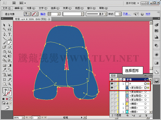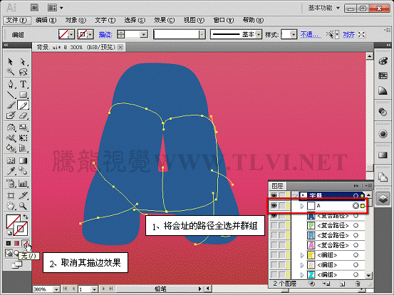 (14)在"图层"调板中展开"A"图形组,复制之前所绘之的路径。
