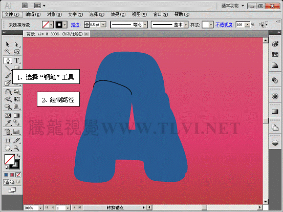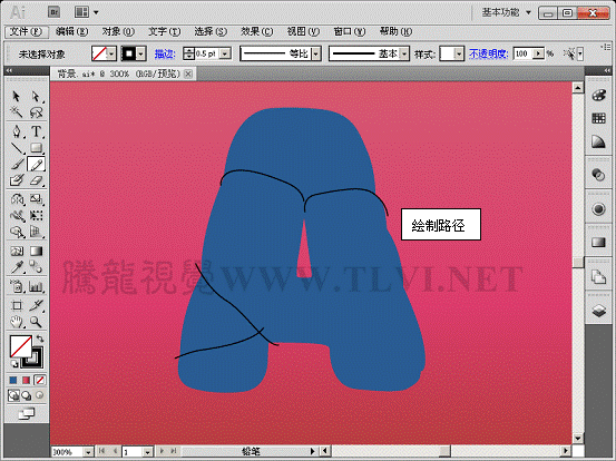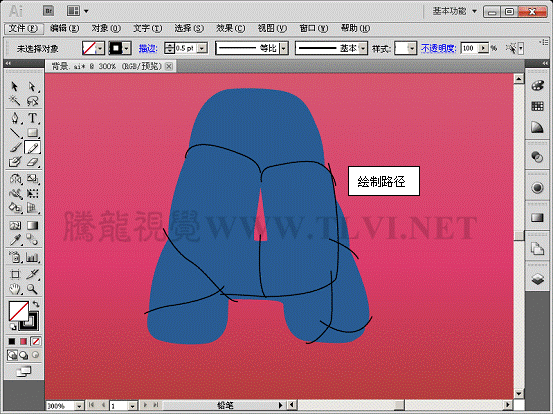 (3)使用"钢笔"或"铅笔"工具,在字母"A"图形上绘制曲线路径。