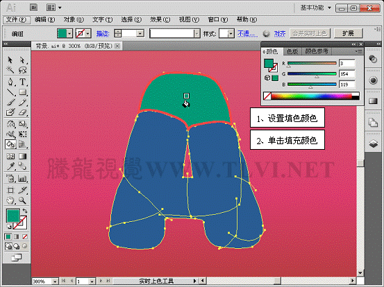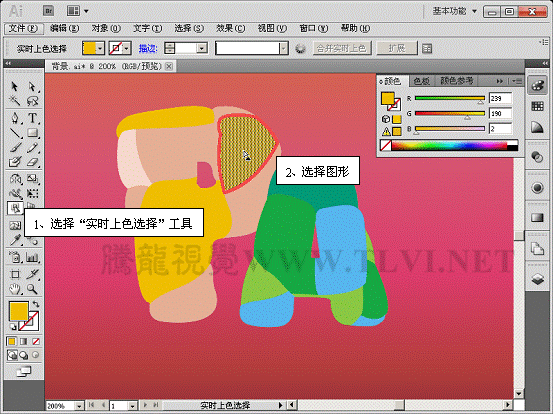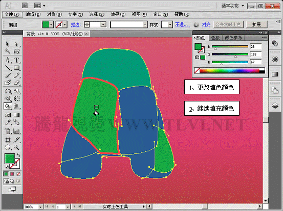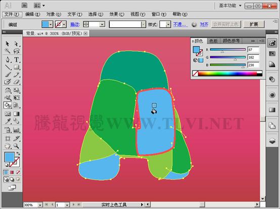 (10)使用"实时上色选择"工具选择图形并更改其填充颜色。
