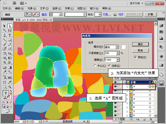 (12)选择字母"A"图形组,执行"效果"→"风格化"→"内发光"命令。