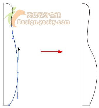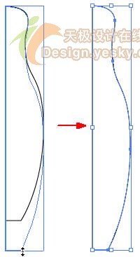 ,拖动上方或下方的句柄将路径沿竖直方向拉长,使整体高度变大一些,如图9所示。调整完毕单击画板上的空白位置,取消选择路径。