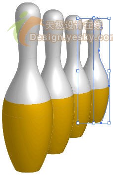 10.再按Ctrl+D复制出第4个,并将它排列在最下面,得到如图23所示的结果。选中第3个保龄球瓶,按住Shift键的同时按1次向左方向键,然后选中第4个保龄球瓶,按住Shift键的同时按两次向左方向键,得到如图24所示的结果。