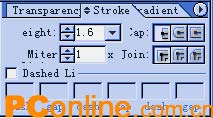 下面,该动手画他的头发了。在这一步中,我们要熟悉填充(Fill)与笔画(Stroke)选择器的功能(图5)。双击填充或笔画画框,可以选择弹出颜色选择器让你选择颜色。笔画的大小由右侧的Stroke选项板管理,(图6)我们可以直接在其中输入数值,决定笔画粗细。这一步有点难度,考验一下我们的鼠标吧。把填充色改为黑色,选择工具箱中的铅笔工具,(图7)按住鼠标左键不放,就可以在画布上画出线条了。