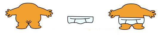 让我想想,我好像漏了点什么,他不是个男孩吗?啊!应该要有一些东西来体现他的男性特征才对——所以我特意用了两条小弧线来表现这一点。现在,终于做出了一个真正的男孩躯干了。不过,让他赤身裸体是不对的,有伤风化先不说,感冒了就不好了。还是让他穿上条裤子吧。这条白色小内裤用到了方形,椭圆形,直线与弧线,当然,还有"黑白双煞"的细致工作。具体的步骤就留待各位探索了。做好了裤子就马上可以给他穿上啦。(图17)