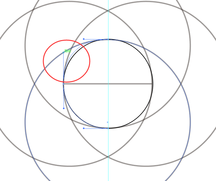 6、重点来了,把这个正圆的所有锚点的所有方向线都移动到如图位置。
