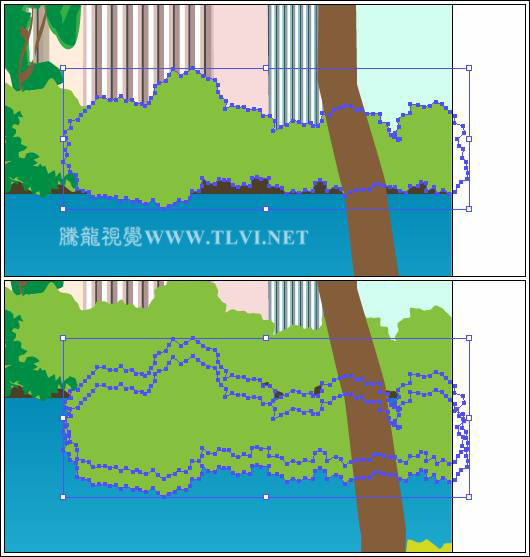 (10)使用同样的方法参照图3-201所示将护栏图形绘制完成。将护栏图形全部选择,执行"对象"→"排列"→"后移一层"命令,调整图形的顺序。