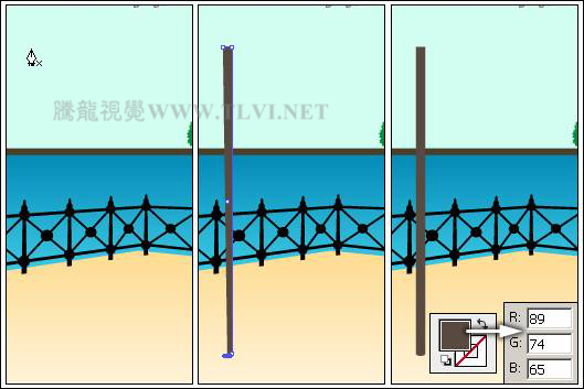 (5)下面绘制护栏。使用"钢笔"工具,在页面中多次单击绘制直线图形,并设置图形的颜色,如图3-196所示。