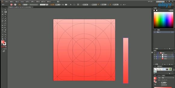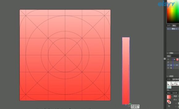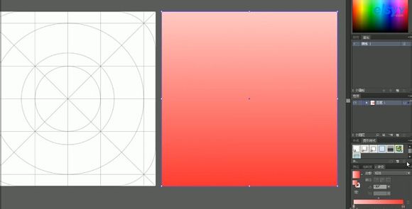 扁平化涉设计中,它是弱化了高光和阴影的,所以它的整体色调和它所表现的立体效果应该是比较柔和的,但是,在刚刚设置的渐变中,它的对比度相对来说有些强烈,要解决问题,就需要用到工具栏里的渐变工具,使用渐变条进行拉伸和修改,让它的颜色对比变得更为柔和。
