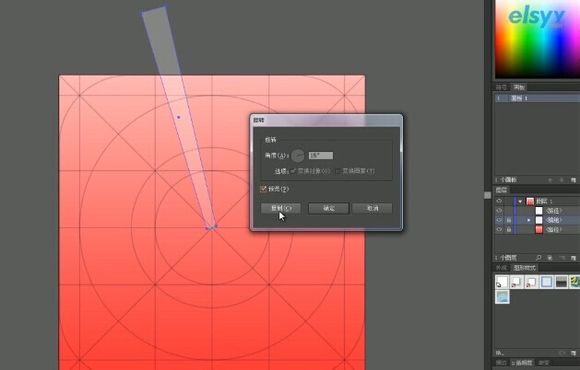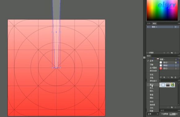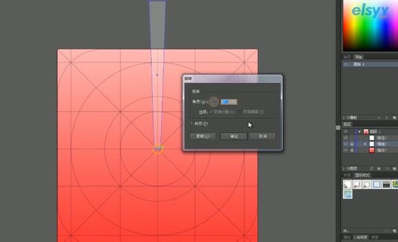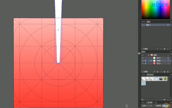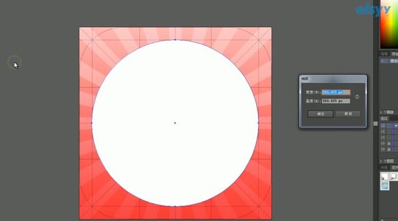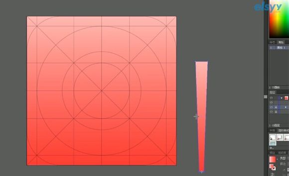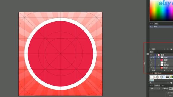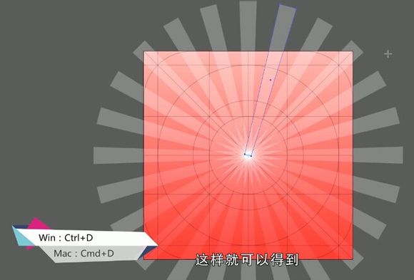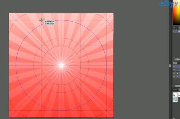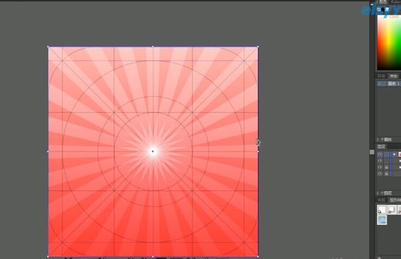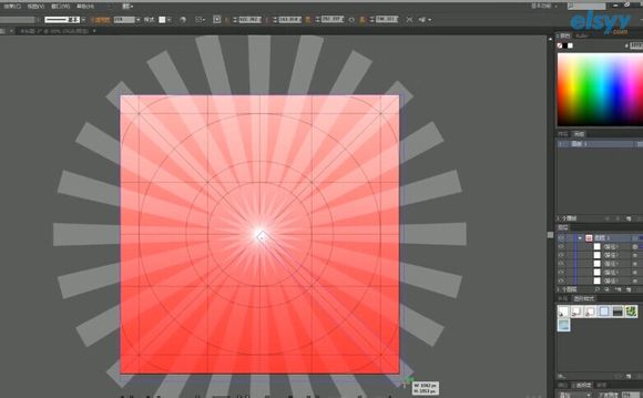 这样就可以得到明显的放射性的感觉了我们还需要把这个小光芒多余的部分减掉,先绘制一个与图案红色部分同等大小的正方形。