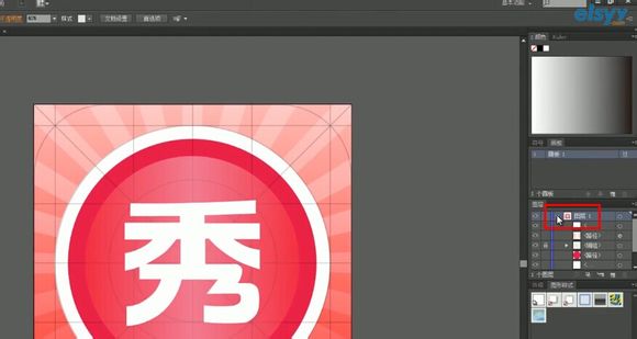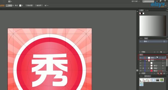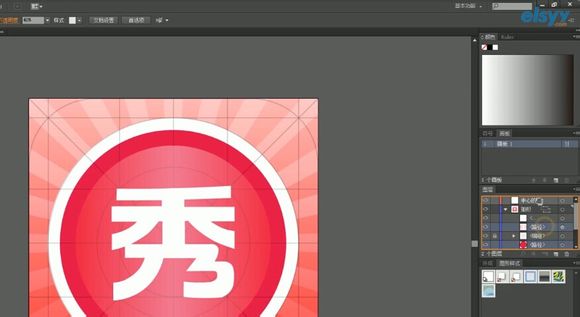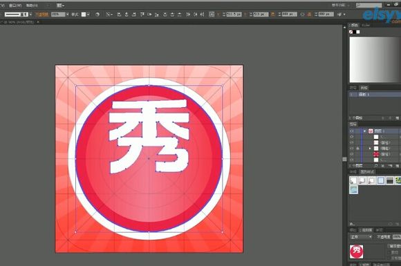 "中心的圆"这个图层置于"矩形"的图层之上,再来为中间的LOGO新建一个图层将它置于最顶层,将"秀"字放入"logo"这个图层里