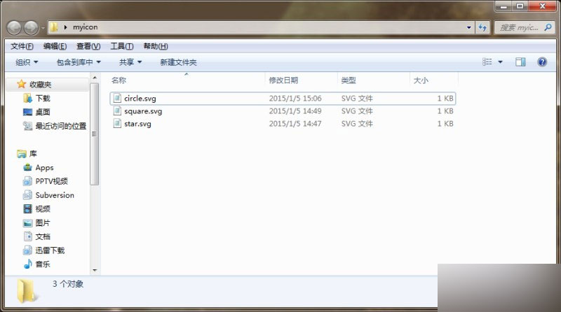 4、重复以上步骤,把需要的图标都画出来保存成SVG文件,并放在同一个文件夹里,给文件夹命好名,如下图。