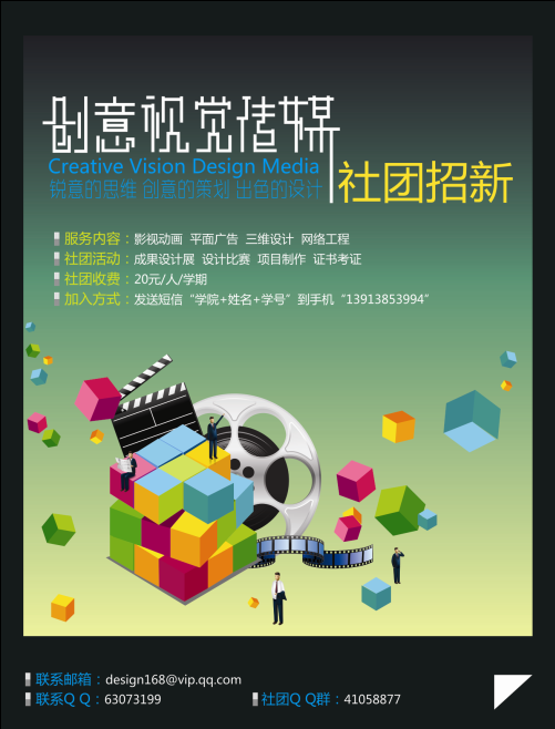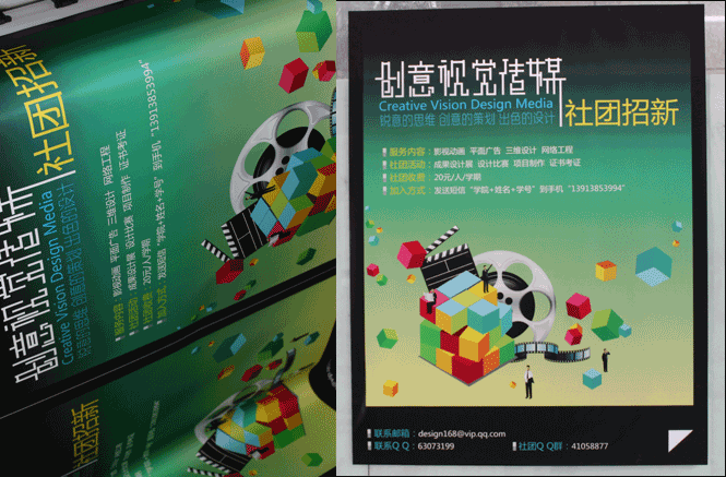 9、因为这张海报是跟传媒有关的海报,当然少不了传媒的元素。所以要画胶卷、影轮等效果。完成效果如下: