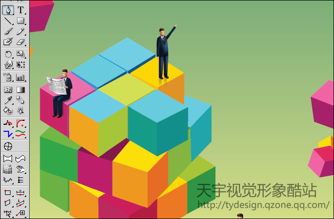 7、然后在魔方上绘制几个小人,更加体现立体感,完成效果如下: