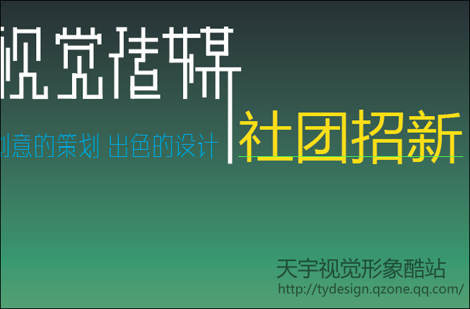 10、利用矩形工具,绘制一个"创意视觉传媒"的文字。文字的颜色要和整体背景色搭配起来。这里采用白、黄、蓝色。