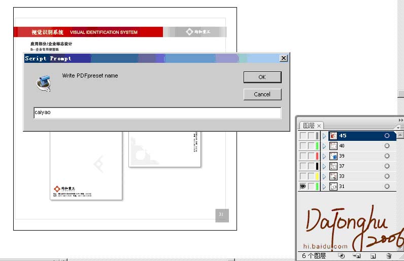 三、打开这个脚本后提示输入PDF配置预设,命名的那个名称,例如:caiyao(必须与一楼设置③的名称一致),否则会提示错误。