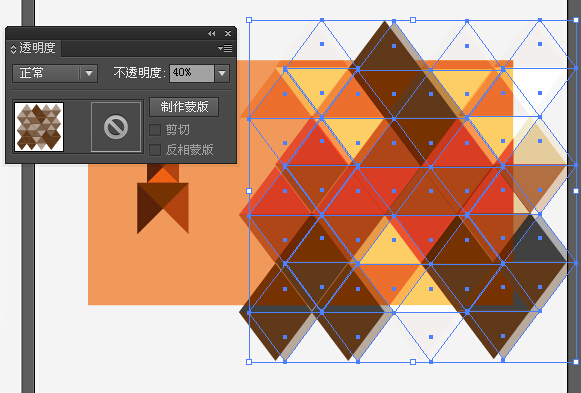 7、复制三角形,组成一个菱形组,Ctrl+G编组。(这里可以改变菱形的混合模式哦,尝试一下,会有意想不到的效果。)
