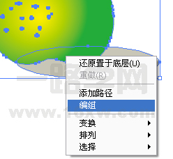 因为阴影部分挡住了梨本身,点击右键,点击至下方最后一个对象,如图: