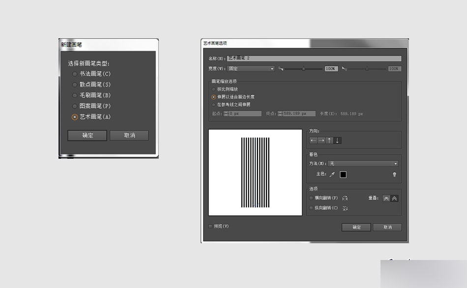 制作条纹图案,我们最先要思考的就是用什么工具能更快捷地实现它。因为诸如条纹、圆点、格子……这类基础图案都有着重复某种视觉规律的共性,因此,我们首先可以先建立好这个视觉规律。条纹的视觉规律就是多线条的并行,因此,我们可以先将线条定义为一个艺术画笔,用这个艺术画笔去勾勒我们的图形。这个思路确定好后,我们就开始动手吧。