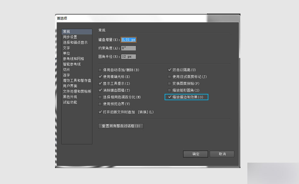 这时,进入【编辑>首选项>常规】,在常规面板中,勾选"缩放描边和效果"。这个选项能让你的画笔随着你对图形大小的改变而按原有比例改变。