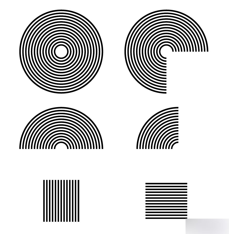 线性条纹几何艺术图案,是由若干平行而成的线条所勾勒的诸如圆、半圆、直线等简单的几何图形,经由图形的巧妙组合而成为一种图案。这类图案在任何场所使用都会显得很大气,条纹间杂了古典和现代风格结合而成的艺术美。