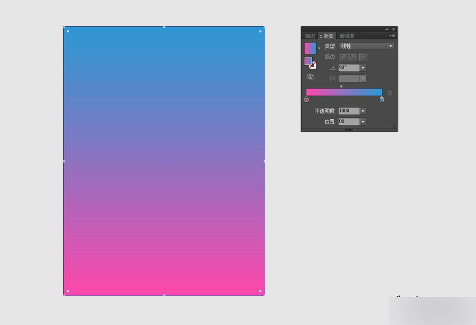 一旦图案绘制完成,将图案编组,就到了上色的环节。首先,让我们先做一个与图案差不多大小的矩形,将矩形关闭描边,填充为如下图所示渐变色。
