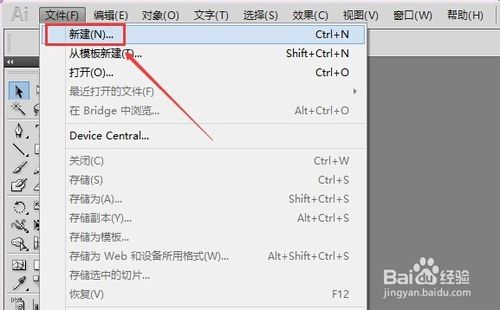 1、打开电脑上安装的Illustrator CS5软件,然后点击菜单栏上的“文件“--->”新建“,如下图所示。