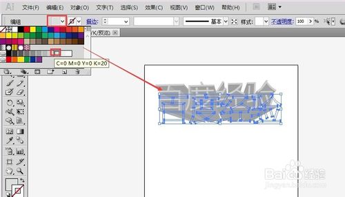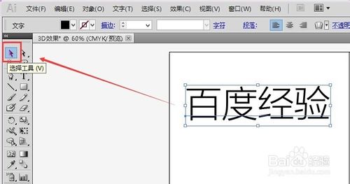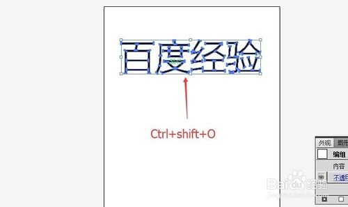 5、选择我们输入的字体:百度经验后,同时按下组合快捷键:Ctrl+Shift+O,这样就可以将文字打散开来转为矢量路径,如下图所示。