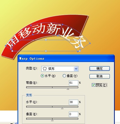 接下来是写字,字好后执行编辑/封套扭曲,数值如图所示。