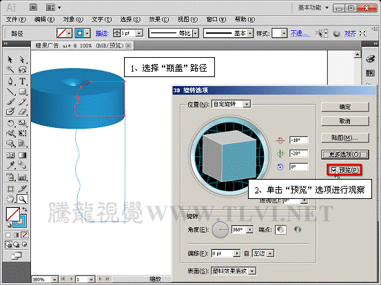 (2)选择瓶盖路径,执行"效果"→"3D"→"绕转"命令。