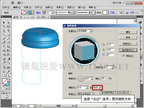 (3)设置该对象的绕转方向。